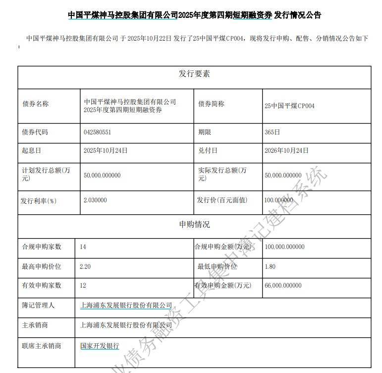 【大河财立方消息】10月27日牛弘配资,中国平煤神马控股集团公告,完成2025年度第四期短期融资券发行。