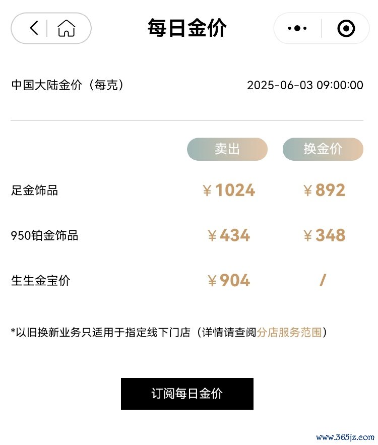 6月3日,国内品牌首饰金价再度迎来重大变化,多个品牌足金饰品价格重回每克千元以上。其中,周生生足金饰品价格1024元/克,与昨天相比上调20元;周大福足金饰品价格调整为1020元/克,较前一日上调22元;老凤祥金价1018元/克,比昨天上涨20元。